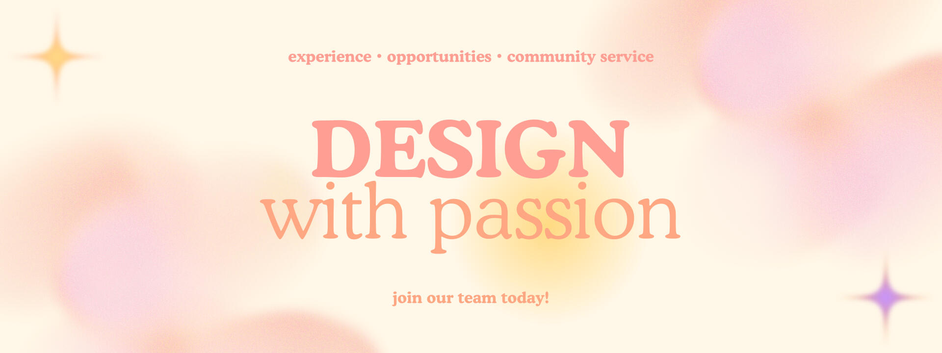 Are you a high school student looking for easy ways to gain valuable leadership experience, acquire numerous volunteer hours quickly, or elevate your graphic design skills? Design with Passion is recruiting for 7+ different positions on a rolling basis, so no need to worry about deadlines.